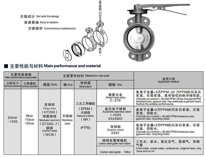 氣動脫硫蝶閥是我公司根據目前國內煙氣脫硫系統需求而設計的專用產品。為適應石灰石漿液和石膏漿液的腐蝕,閥板和閥桿采用了