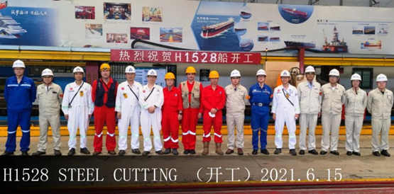 6月15日,外高橋造船為新加坡EPS船東建造的15.8萬噸系列蘇伊士原油輪H1528船開工儀式在制造部切割中心順利舉行。EPS駐廠經(jīng)理康明煥、ABS船級(jí)社駐廠經(jīng)理竹建福、外高橋造船安全總監(jiān)王金成及相關(guān)部門負(fù)責(zé)人共同參加開工儀式。