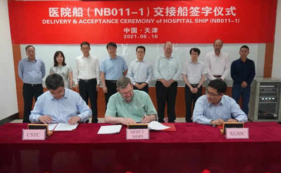 6月16日,新港船舶重工為美國(guó)船東Mercy Ships公司建造的醫(yī)院船順利簽字交付,即將前往比利時(shí)進(jìn)行余下的安裝工作。