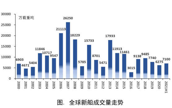 另據中國船舶集團統計,今年上半年中國船舶集團累計承接新船訂單232艘、1838.6萬載重噸,同比增長2.9倍,位居全球第一,提前完成了年度接單計劃。中國船舶集團船海業務不僅實現時間過半、完成生產經營任務過半的目標,還為中國船舶集團全面實施“十四五”規劃開好局、邁好步獻上厚禮。