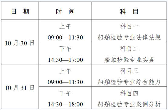 本年度考試范圍為《注冊驗船師職業資格考試大綱(2019版)》和2020年調整的考試內容。《注冊驗船師職業資格考試大綱(2019版)》電子版可在中華人民共和國海事局網站(https://www.msa.gov.cn)通知公告欄目下載。紙質版已由人民交通出版社股份有限公司發行(聯系電話:010-64981400)。