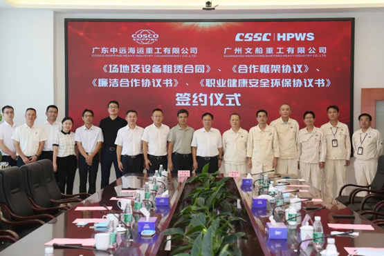 7月9日下午,廣東中遠海運重工與中船黃埔文沖在麻涌廠區舉行《場地及設備租賃合同》、《合作框架協議》、《職業健康安全環保協議書》、《廉潔合作協議書》簽署儀式,進一步推動雙方合作發展走深走實。