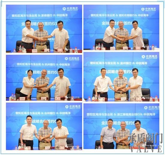 六家金融機構(gòu)代表,在舟山市普陀區(qū)海洋與漁業(yè)局黨委副書記張立德見證下,與中創(chuàng)海洋科技股份有限公司等三方分別簽署了《關(guān)于支持國家新材料漁船產(chǎn)業(yè)發(fā)展的金融戰(zhàn)略合作協(xié)議》。