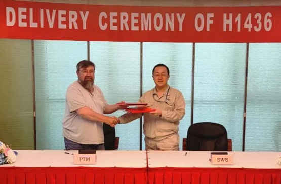 7月22日,中國船舶集團旗下上海外高橋造船有限公司為希臘PTM公司建造的11.4萬噸阿芙拉原油輪系列第二艘船“SEA URCHIN”輪簽字交付。PTM監造組經理Viorel Bran和外高橋造船市場營銷部副部長李輝分別代表雙方簽署交船協議。