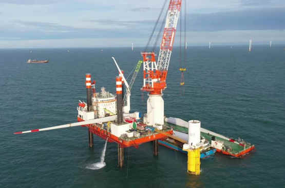 近日,龍源振華承建的湛江徐聞海上風電場項目EPC總承包Ⅰ標工程進度再創新高,不斷提升單套無動力船機設備6.45兆瓦大容量機型海上風機吊裝施工速度,創造了10天完成5臺的最新紀錄!