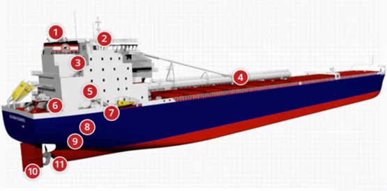 AlgomaCentral Corp表示,此次建造的Seaway-Max級自卸散貨船是此前建造的Equinox級自卸散貨船的升級版,具有更高的燃料效率,并能夠在發動機功率較低的情況下提高航速和載重能力。此外,該設計在船尾和雙舵的設計上也實現了創新,閥門安裝符合標準,有效減輕船舶重量,以及拓寬貨艙空間,使船舶容量增加約1440噸(tonnes)。